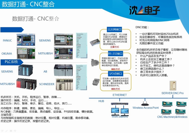 機(jī)床數(shù)據(jù)采集通過(guò)機(jī)床聯(lián)網(wǎng)對(duì)車(chē)間數(shù)控機(jī)床進(jìn)行自動(dòng)監(jiān)測(cè)與管理。通過(guò)以太網(wǎng)絡(luò)連接,使用一臺(tái)電腦即可對(duì)所有的數(shù)控機(jī)床進(jìn)行網(wǎng)絡(luò)化集中管理,簡(jiǎn)單易用,穩(wěn)定可靠。有效的提高機(jī)床效率,降低管理成本,是車(chē)間管理者和企業(yè)領(lǐng)導(dǎo)的強(qiáng)大數(shù)字化助手。