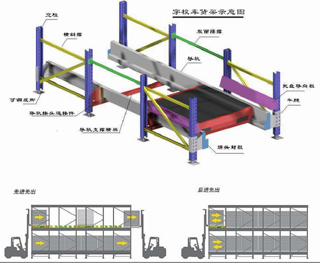 穿梭車庫(kù)存儲(chǔ)系統(tǒng)是采用穿梭式貨架系統(tǒng)加叉車等存儲(chǔ)搬運(yùn)操作設(shè)備構(gòu)成的半自動(dòng)化立體庫(kù)系統(tǒng),主要依賴于人工叉車存儲(chǔ)作業(yè)實(shí)現(xiàn)穿梭式貨架庫(kù)區(qū)內(nèi)倉(cāng)儲(chǔ)物品在作業(yè)面(即叉車作業(yè)區(qū)與穿梭式貨架存儲(chǔ)區(qū)的共向面)的出入庫(kù)作業(yè),而在穿梭式貨架內(nèi)則依賴于雙向直線行駛的穿梭車實(shí)現(xiàn)物品存儲(chǔ)與搬運(yùn)的自動(dòng)作業(yè),因其投資成本較低,基本不改變?cè)瓊}(cāng)儲(chǔ)區(qū)域外作業(yè)方式和流程,又能提高存儲(chǔ)區(qū)域的存儲(chǔ)密度與作業(yè)效率,是目前眾多企業(yè)選擇的貨架產(chǎn)品之一。