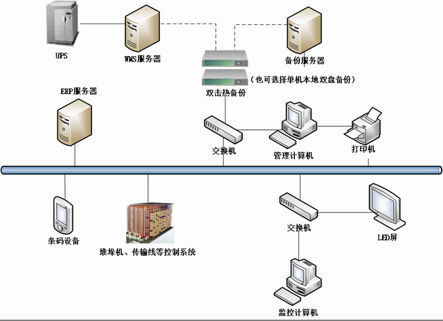 出入庫站計算機:運行客戶端軟件,負責出入庫操作及庫存管理,同時連接打印機負責打印出入庫報表、連接條碼打印機進行條碼打印。