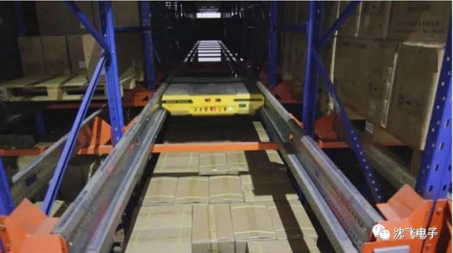 控制程序驅(qū)動穿梭車將送托盤至目標位置。送至目標位置后,穿梭車回到貨架端頭,同時系統(tǒng)完成賬務(wù)處理,入庫流程結(jié)束。叉車再去叉取下一個滿貨的托盤,重復(fù)上一流程,繼續(xù)入庫操作。